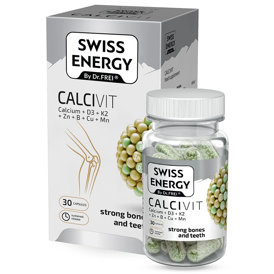 کلسی ویت سوئیس انرژی، مکمل تغذیه ای به شکل دارویی کپسول حاوی پلت های آهسته رهش است که با نام قرص کلسی ویت سوئیس انرژی نیز شناخته می شود و برای سلامت استخوان کاربرد دارد. کلسی ویت سوئیس انرژی حاوی کلسیم به فرم کلسیم کربنات، ویتامین D3، ویتامین K2، زینک به فرم زینک اکساید، مس و منگنز است و علاوه بر تأمین نیاز بدن به این ریزمغذی ها و رفع کمبود، به تقویت استحکام استخوان ها و دندان ها و جلوگیری از پوکی استخوان نیز کمک می کند.
