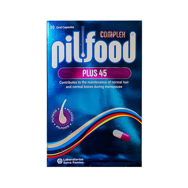 کپسول پیلفود کمپلکس پلاس 45 Pilfood Complex Plus 45 یک مکمل برای کمک به سلامت استخوان ها و همچنین جلوگیری از ریزش مو در دوران یائسگی است. پیلفود کمپلکس پلاس 45 برای افرادی که بیش از 45 سال هستند و ممکن است در دوران یائسگی دچار ریزش مو و پوکی استخوان شوند، طراحی و تولید شده است.