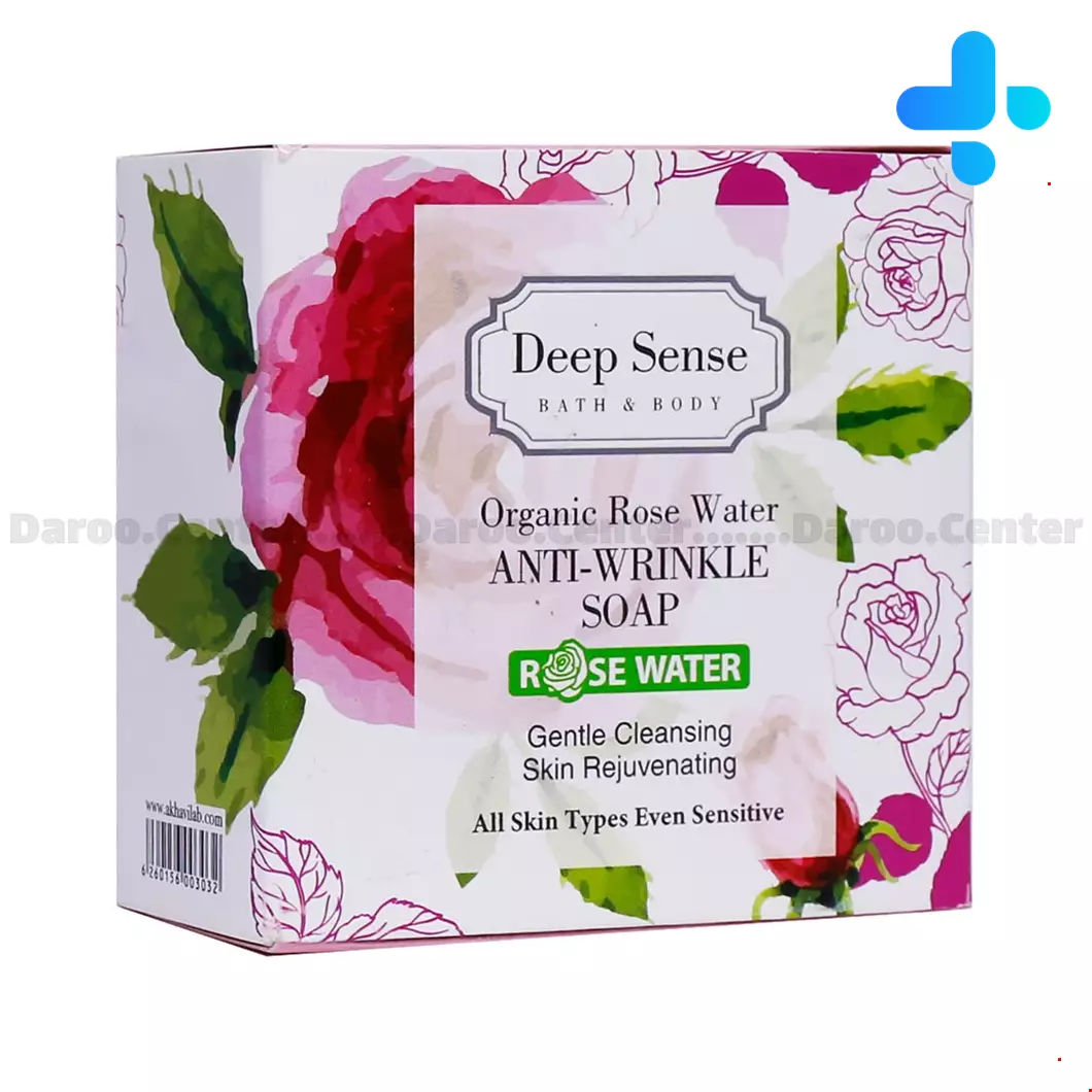 صابون گلاب مناسب پوست های دارای چروک دیپ سنس پاک کننده آرایش و آلودگی از روی پوست بوده و به دلیل گلاب موجود در خود، پوست را آبرسانی کرده و مانع از ایجاد خشکی، حس کشیدگی، التهاب و چین و چروک می شود.