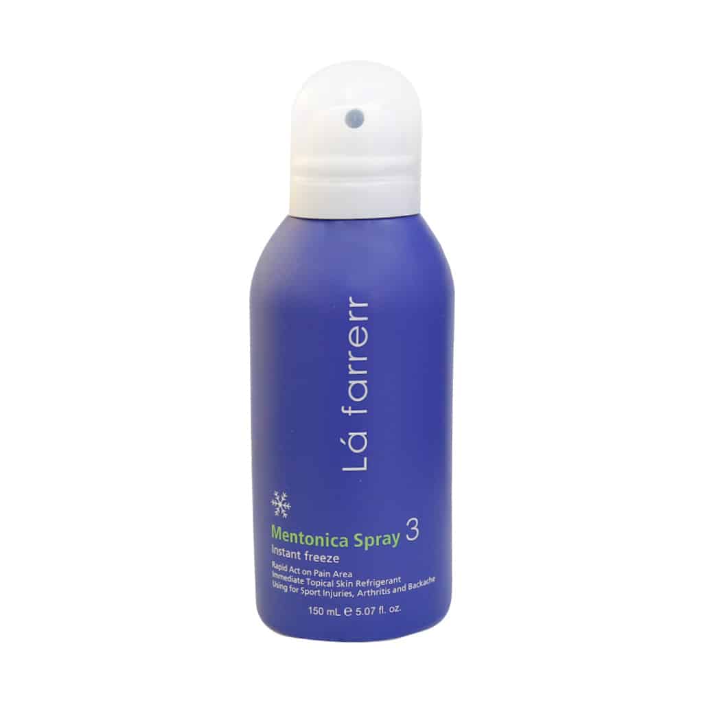 اسپری خنک کننده و تسکین دهنده منتونیکا لافارر برای تسکین درد ناشی از آسیب های ورزشی مانند کوفتگی، کبودی، التهاب، اسپاسم و… مناسب است.